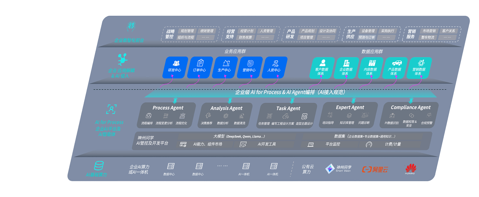 端到端的一站式AI工作空间深度融合了从企业战略规划到日常经营的全流程业务板块,,,,定向解决车企内部领域多、、部门多、、、链条长、、、、场景碎片化等难题,,支持车企快速构建以AI为核心的生产力写作体系,,实现任务执行与AI能力的无缝集成与交互